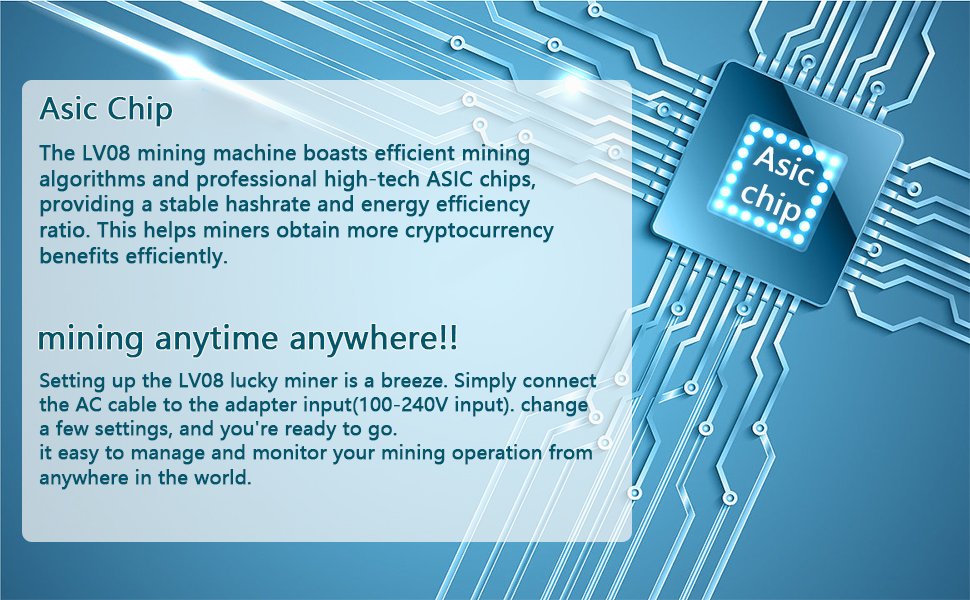 • High Performance ASIC Mining Chip: The device is equipped with an advanced BM1366 ASIC mining chip, lts hardrash is between 4000GH/S and 5000GHIS, BeluckyMan LV08 Btc Miner utilizes advanced technology and high-quality components to ensure efficient and long-term stable operation; It has 5nm ASIC chip performance for cryptocurrency mining